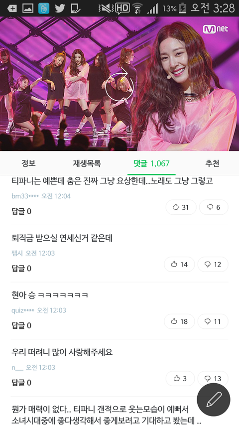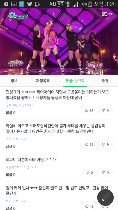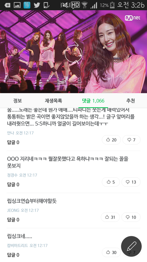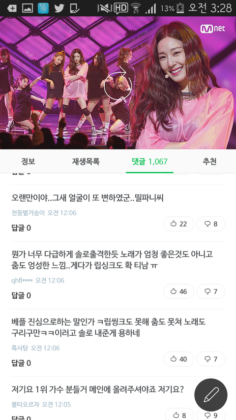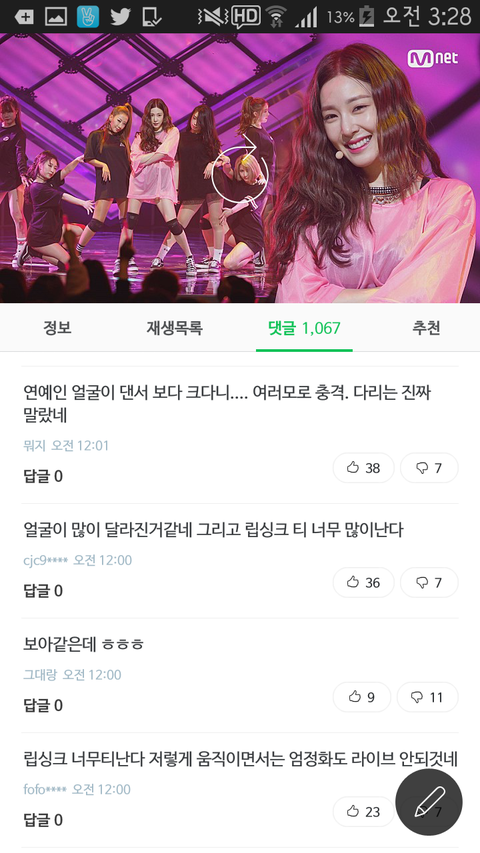 립싱크로도 욕 많이 먹고있고.근데 첫무대는 원래 완벽해야하니까 대부분 컴백첫주에는 립싱크하지 않나. 그래도 립싱크는 이해하는데