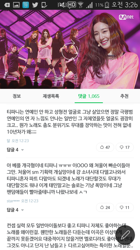 캡처는 못했지만 바닥에 누워서 춤추는 장면보고 싸보인다는 댓글이랑 av배우인줄 알았다는 댓글도 봤는데 좀 심한듯 그냥 색안경 끼고 보는걸로밖에 안보임