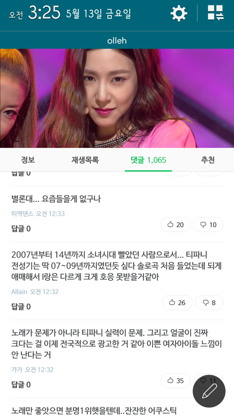 그리고 팬들 응원글이나 긍정적인 댓글에는 추천수보다 반대수가 더 많고 (최신순으로 보면) 악플이나 부정적인 댓글에는 추천수가 훨씬 많은듯