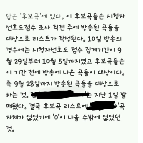 우리곡이 나온지 얼마안되서 후보곡에 아직 안올라서 조사가 안되서 빵점인거야!!! 걱정마 이삐들!!
