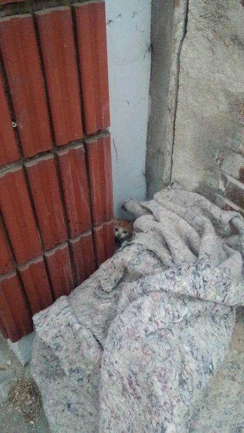 그날도 유기장소를 돌다가 공사장 천막속에서 고개를 빼꼼히 내밀고 있는 이 아이를 만나게 되었어요.