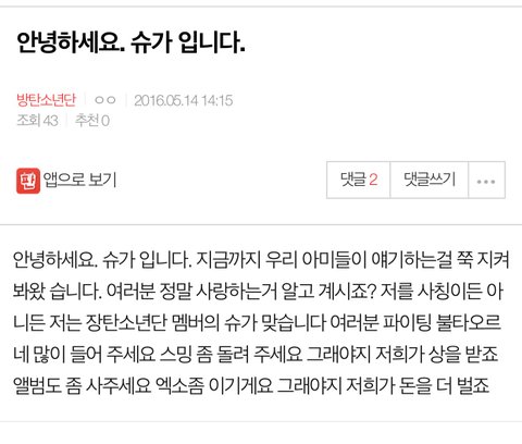 헐 애들아 슈가 판에글 올림