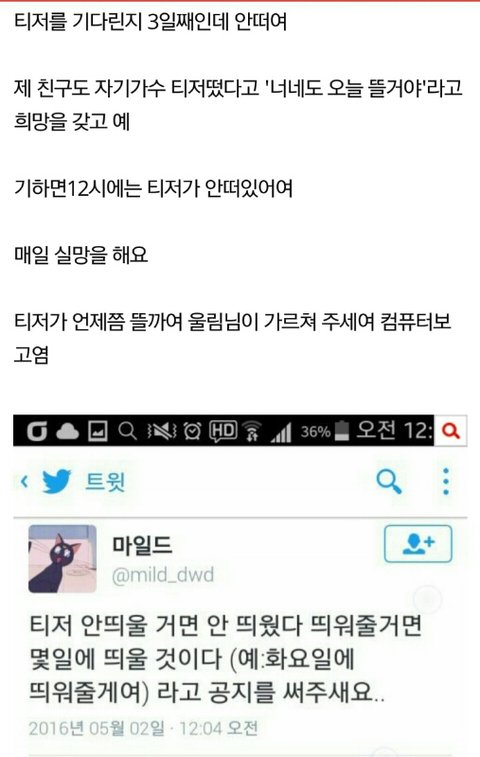 이번에 우현이티저 안나와서 잉톡이가 쓴글