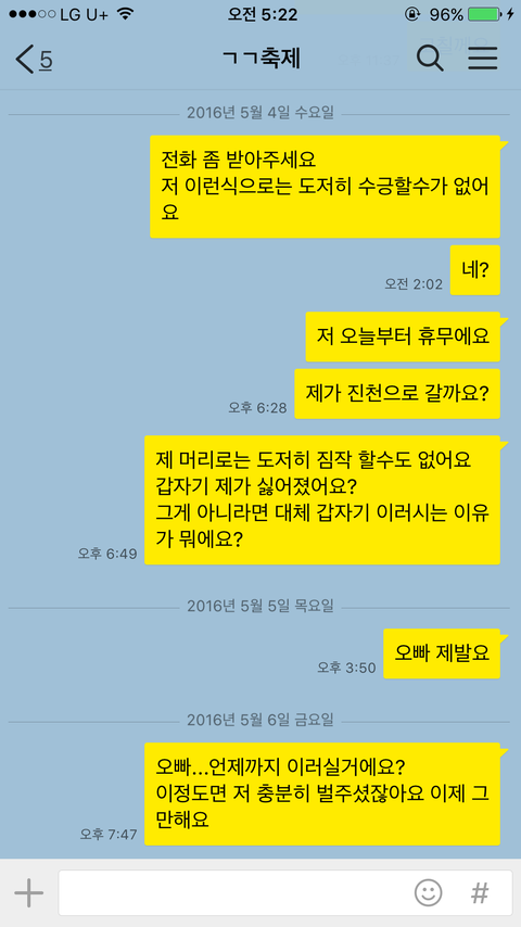 연락이 없던날 오빠는 일이 많아서 퇴근시간이 지나도 일을 해야한다고 했어요.