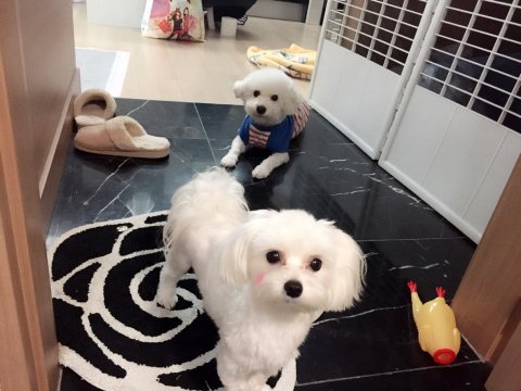 이건 애견펜션 사우나에서 형 비숑이랑 찍은 사진이에요.기회가 된다면 다음엔