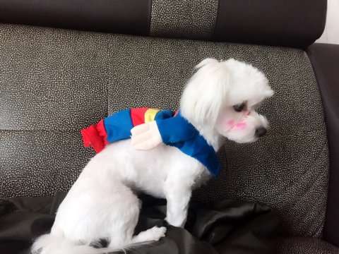 우리 만두 슈퍼맨 옷을 입혔는데 옷이 너무 작네요 ㅠㅠ