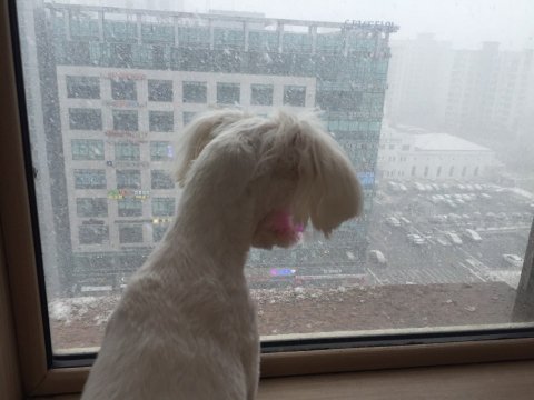 눈 오는 날에 눈 감상중인 만두