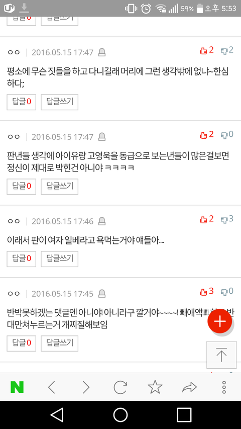 저년들 반박글 올리면 반대만 누르고 튀는거 개빡