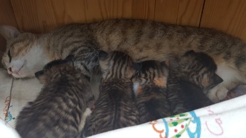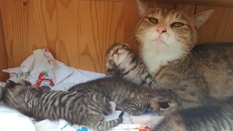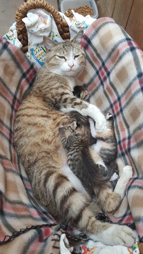 늘 밥을 챙겨주던 길냥이 한마리가 있었는데 이아이가 4마리 귀염둥이 들을 낳았더라구여