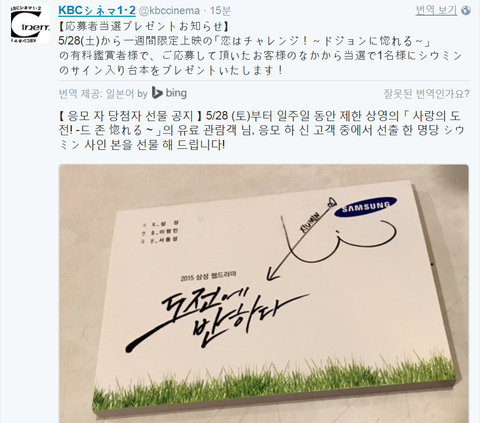 5월 28일부터 추가상영이 시작되는 후쿠오카 KBC시네마에서 관객들을 대상으로 민석이 사인대본을 응모하는 이벤트를 하나봐 진짜 부러워 ㅠㅠ 일본 가고 싶어 가서 큰 화면으로 도전이 보고싶다 ㅠㅠㅠㅠㅠㅠㅠㅠ