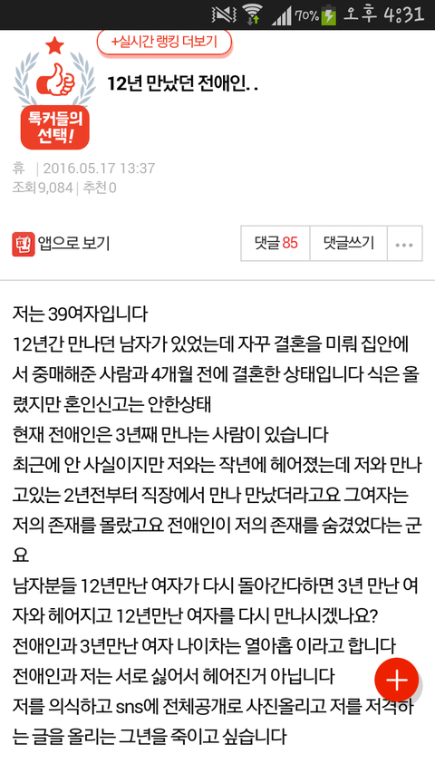 원본지킴이 유부년데 12년사귄 전남자 스토커