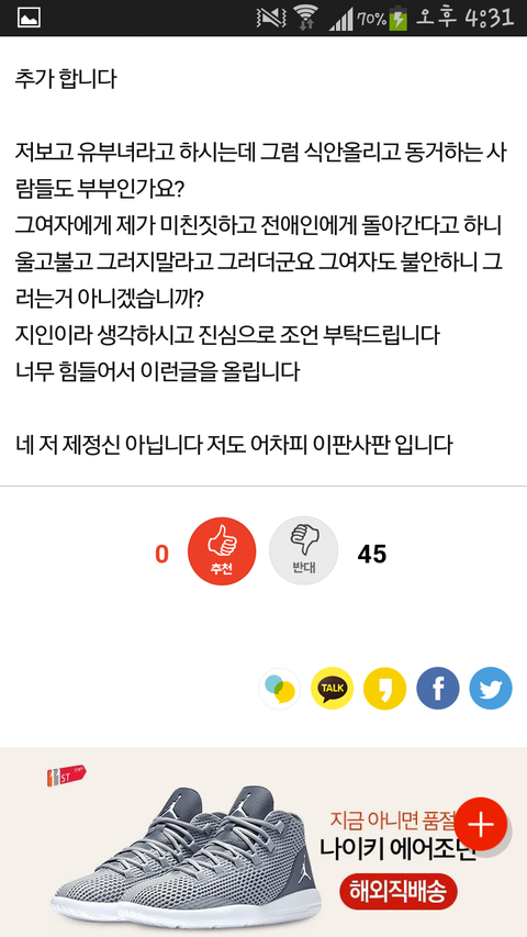 전 애인으 여친이 19이나 어리다는데 미쳤다고 아줌마한테 돌아가겠어요?ㅠㅠ
