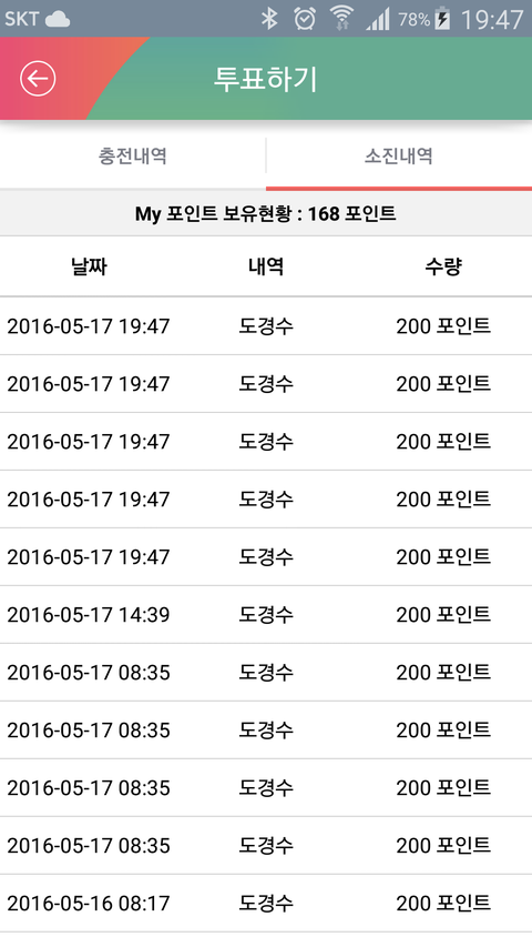 2000포인트 모아서 결국 10표 다 투표했다~!