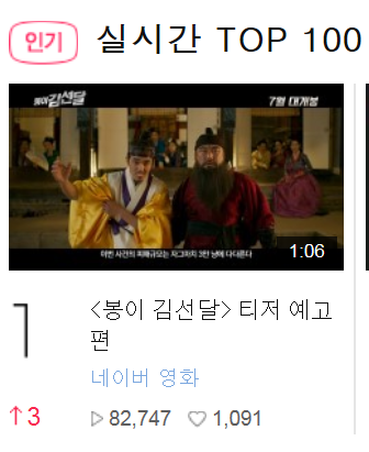 봉이 김선달 티저 예고편 네이버 캐스트 실시간 1위닷!!