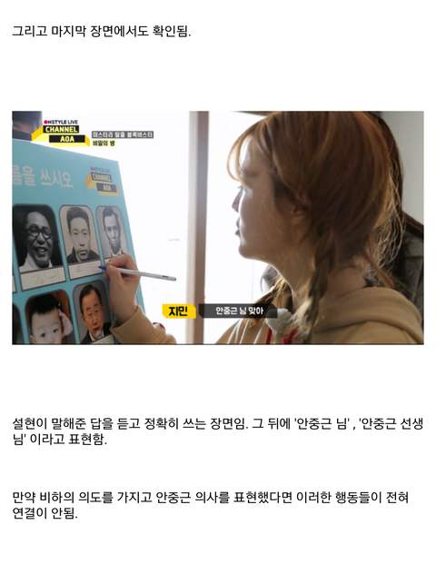 이거보면 약간 몰아간거 처럼 보이기도 하고...그래도 안중근보고 모른건 얘네 잘못임 초딩도 아니고 안중근을 어찌모름 다른 위인은 알면서;;