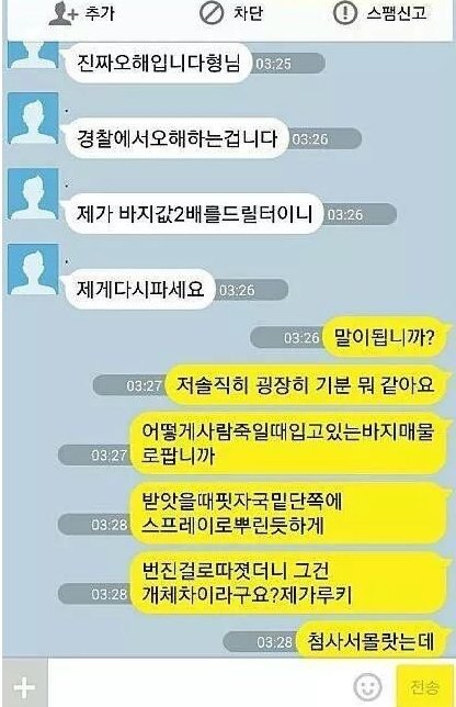 미친새끼; 머리가 보통 나쁜게 아니네 아니 지가 사람죽였을 때 피묻은 청바지를 팔생각을하냐;ㅋㅋㅋㅋㅈ