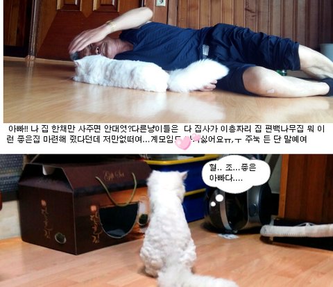 퇴근하고 집에 왔는데 아빠가 냐옹이에게 "내집마련의 꿈"을 실현해주는