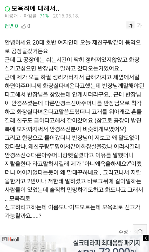 모욕죄로 신고가 가능한가요..