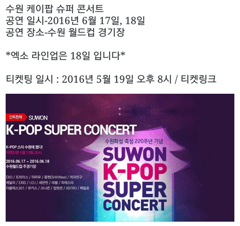 공지바꿔@) 수원케이팝콘서트 오늘 티켓팅!!!