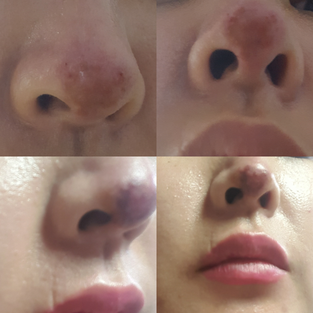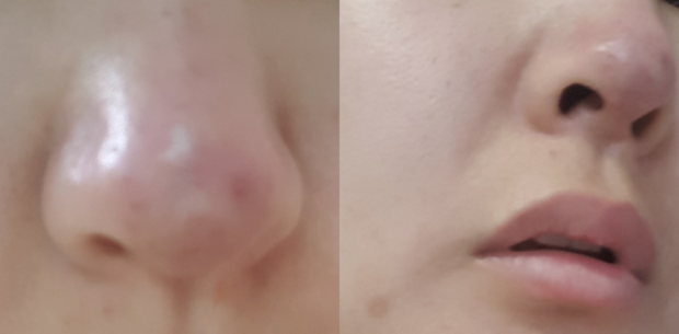 (병원방문하였고,시술했던 원장이 아닌 다른 원장이 진료를 봄) 부원장은 작은 염증이라면서 코에 넣은 필러를 녹이고 염증완치 후 다시 필러를 넣어준다고 함. 간호사한테 코에 박트로반 발라주라고 함.