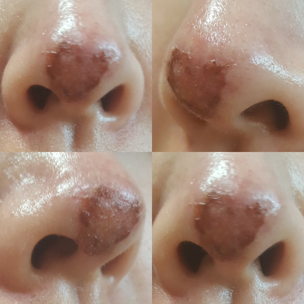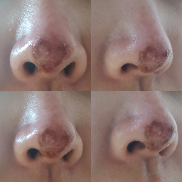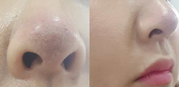 검게 올라온 코사진과 피부 각질이 올라온 사진을 병원에 보내니 내원방문요청.