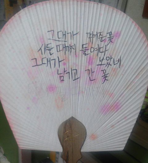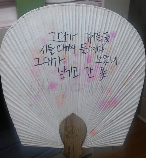 부채만드는데 앞면이 물들어서 그거 흰색물감으로 정리했는데 정리한거 티남??