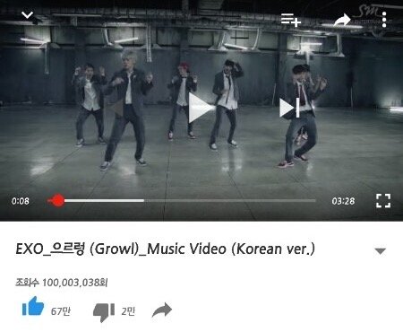 공지 올려@으르렁 뮤비 1억뷰 달성