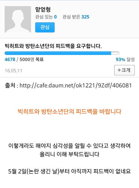 원래 나 ㅉㅃ(다음 최대규모카페 160만회원수)이랑 팬톡만하는데..거기 요새 방탄이야기만 나와도 욕먹고 그래서 못가고 있음...진짜 심각한 상황이고. 낼 ㅂㅂㄱ올리신다니까 꼭 도와드려서 해명글 퍼트리자!!