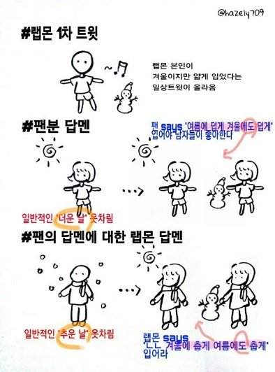 남준 : 춥게 입으세요 = 추울 때 입는 복장으로 입으세요 = 길게 입으세요