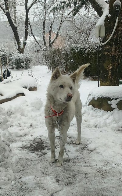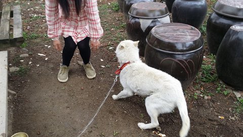 식당에사는 친구의 밥을 얻어 먹어가며 살아온 진돗개 설이.