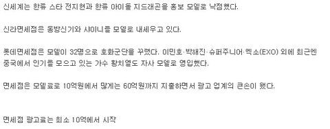 CF 전속모델료 10억기준