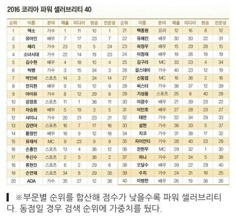 2015년 포브스코리아 파워셀레브리티 TOP30