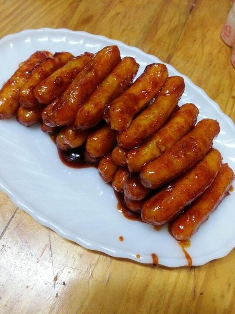 이건 떡꼬치에요 떡 하나하나 튀기느라 더워죽는줄 ㅜㅜ