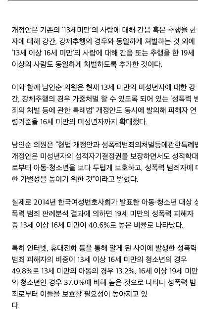 여러분, 얼마전 아들 친구 16세 여중생을 임신시킨 40대 성인 남성이 2심에서 무죄 판결을 받은 것도 바로 이 법 때문인걸 아시는지요?