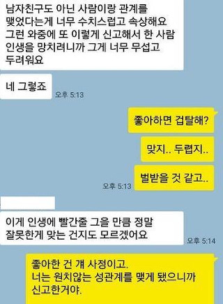 의제미성년 나이가 만13세 까지라 당장 구속 수사가 안된다고, 가해자 쪽이 아는 사이라 서로 합의 하의 성관계를 했다고 하면, 수사가 힘들어 질수 있다고, 그리고, 나중에 무혐의 처분이 내려 지면, 무고죄로 우리가 고발 될 수도 있다구요.....