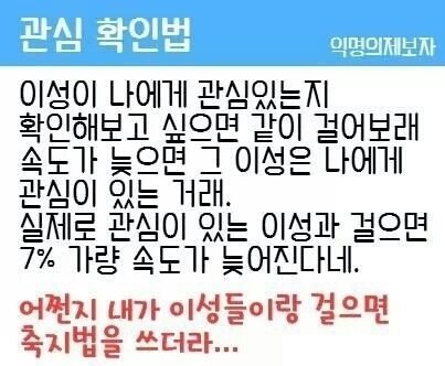 관심없는애랑 있으면 이동이 주목적이니까 평소대로 빨리걷는데 그 사람한테 관심이있거나 대화에 신경을 쓰면 좀 느리게 걷게됨 그리고 뭔가 떼놓고 빨리가고싶지않은 마음이 들어서 상대방걸음걸이에 맞추다가 좀 느려지기도 하지