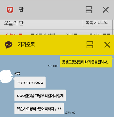 판에 글써보는거 처음이라서 댓글알람 안울리길래 내글 묻힌줄알았는데 톡선인거보고 되게놀랬어 근데 댓글이 전부 주작이래서ㅋㅋ... 주작할만큼 한가한거아니고 내가 톡선될줄알고 주작하니? 그런것도 아닌데 나는 판글처음써보고 고민이라서 올린글인데ㅋㅋ 이름 못가린건 깜빡해서 못가렸어 어차피 민휘는 오타고.. 그리고 판에서 주작에 민감한건 알고있는데 물증없이 주작으로 몰지말아줬음해ㅎㅎㅠㅠㅠㅠㅠㅠㅠㅠㅠㅠㅠㅠ