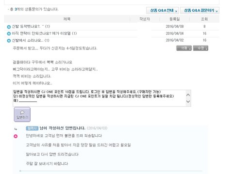 4월 2일 문의글을 남겼고, 3일에 답변이 달려 4일날 재차 문의를하고 포장하여 선불로 구두를 보냈습니다.