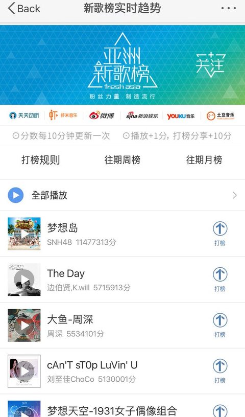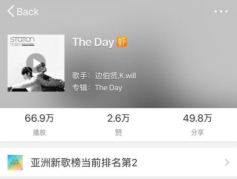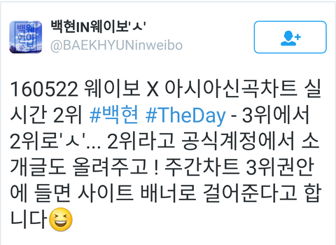 백현이 웨이보X아시아신곡차트 2위
