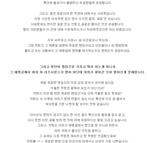 아미반박글에대한반박 조작논란글 사과문