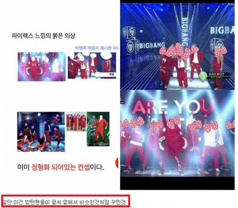 스타일링이 겹쳤다 뭐다 하는데 이건 뭐라고 설명할래요? 아, 빅뱅은 협찬이라서 괜찮아? 응 우리도 협찬이야^^ 이런 게 바로 이중잣대~