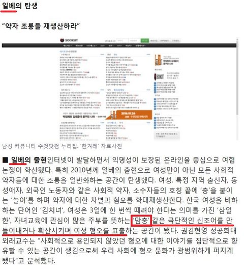 맘충은 약자조롱과 비하를 일삼는 일베에서 만든 신조어로