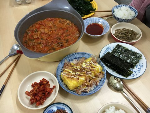 신랑의 자신있는 메뉴 계란말이와 김치찌개에요 ㅋㅋ