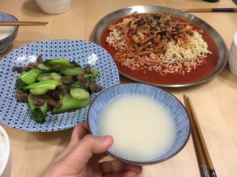 해물불닭볶음면과 청경채볶음! 동동주 캬 ㅎ