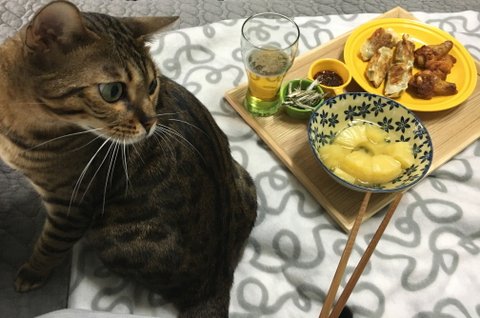 신랑이 맥주안주 차려왔더니 옆에서 탐내고있어요 ㅋㅋ