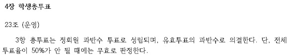 건국대학교 글로컬 캠퍼스 총학생회칙 및 이하 선거 시행세칙에 의거한 당선조건 수렴
