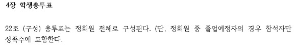 따라서 총 투표 구성원은 (1학년 2학년 3학년 재학생 + 4학년 이상 재학생 中 투표 참석자)