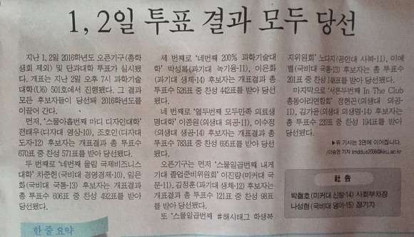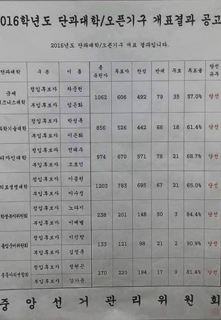 수 천 학우들의 염원으로 개표 결과
