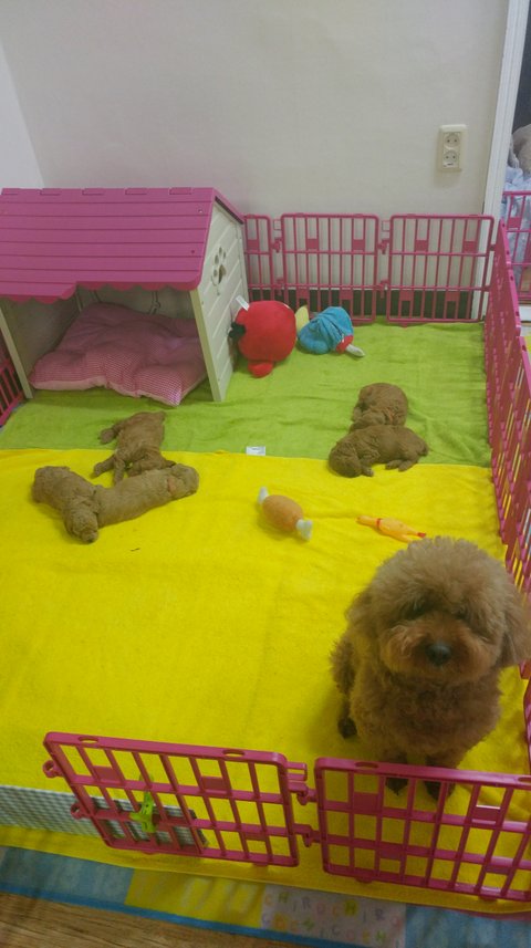 엄마개가 옆에도 못오게해서 울타리안에 넣어놨더니 쫄..아서 ㅋㅋㅋ 저러고있습니당