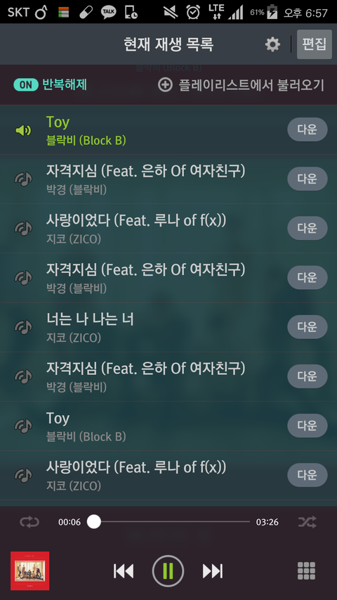 그리고 반복재생 돌려놓고 계속 저대로 반복하면 되는거죠??